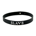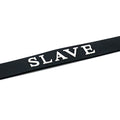 Black silicone adjustable collar. The word SLAVE is written on the front of the collar in white letters.