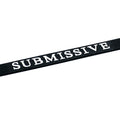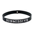 Black silicone adjustable collar. The word SUBMISSIVE is written on the front of the collar in white letters.