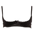 Underwired red half cup bra with delicate embroidery at the cups. Stretch satin on the sides and in the back. Straps adjustable, hook closure in the back. Bra Only.