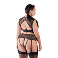 Sensual seduction with exceptional comfort! Bralette and suspender string made out of soft, stretchy lace that is combined with Powernet. Bralette with decorative rhinestones in the low-cut cleavage area with a hook fastener at the back. The Suspender string with 6 adjustable and removable suspender straps and removable string part which can also be unbuttoned. When the string part is removed, there are only 2 stretchy straps running over the open crotch. 90% polyamide, 10% spandex. Without stockings.