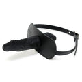 Genuine leather gag with internal and external dildo, adjustable with buckle.