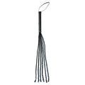 Genuine leather whip with 6 platted strings. Handle 7.5 Inches x 1 Inches, Strings 18 Inches.