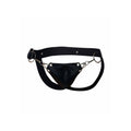 The Snap Jockstrap is made of strong faux leather in sleek black. With minimal coverage at the back, sweat can evaporate more freely offering the wearer a more comfortable fit. A chain-link pouch at the front supports the penis without scrimping on sex appeal, whilst wide straps sit on the hips for a supportive finish. The jockstrap has adjustable sides so it can fit all sizes. One Size.