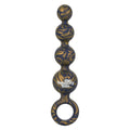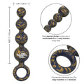 The Naughty Bits Butt Balls Silicone Booty Beads is made for all your anal needs with a plush silicone, tapered beads, and easy retrieval loop. The petite plug has a sturdy o-shaped retrieval loop for comfortable insertion, thrilling stimulation, and safe, gentle removal. Perfect for beginners and erotic experts alike, the tapered shaft increases in girth for intensifying pleasure. The Naughty Bits collection is made to stand out in any nightstand with eye-catching designs and orgasmic features. The ultra-plush silicone and golden marbled pattern of this gorgeous anal probe will make even the most stylish lover smiling before and after. Dimensions of Beads 4.5 x 1.25 in.