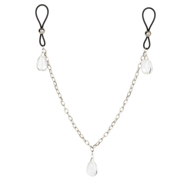 Includes 2 fully adjustable nipple adornments. Soft and comfortable cinch design. Sturdy high-quality chain for added sensuality. Non-piercing, non-tarnishing, nickel-free. Nickel-Free Iron, chain, beads. Silicone, loops. Crystal, jewels.