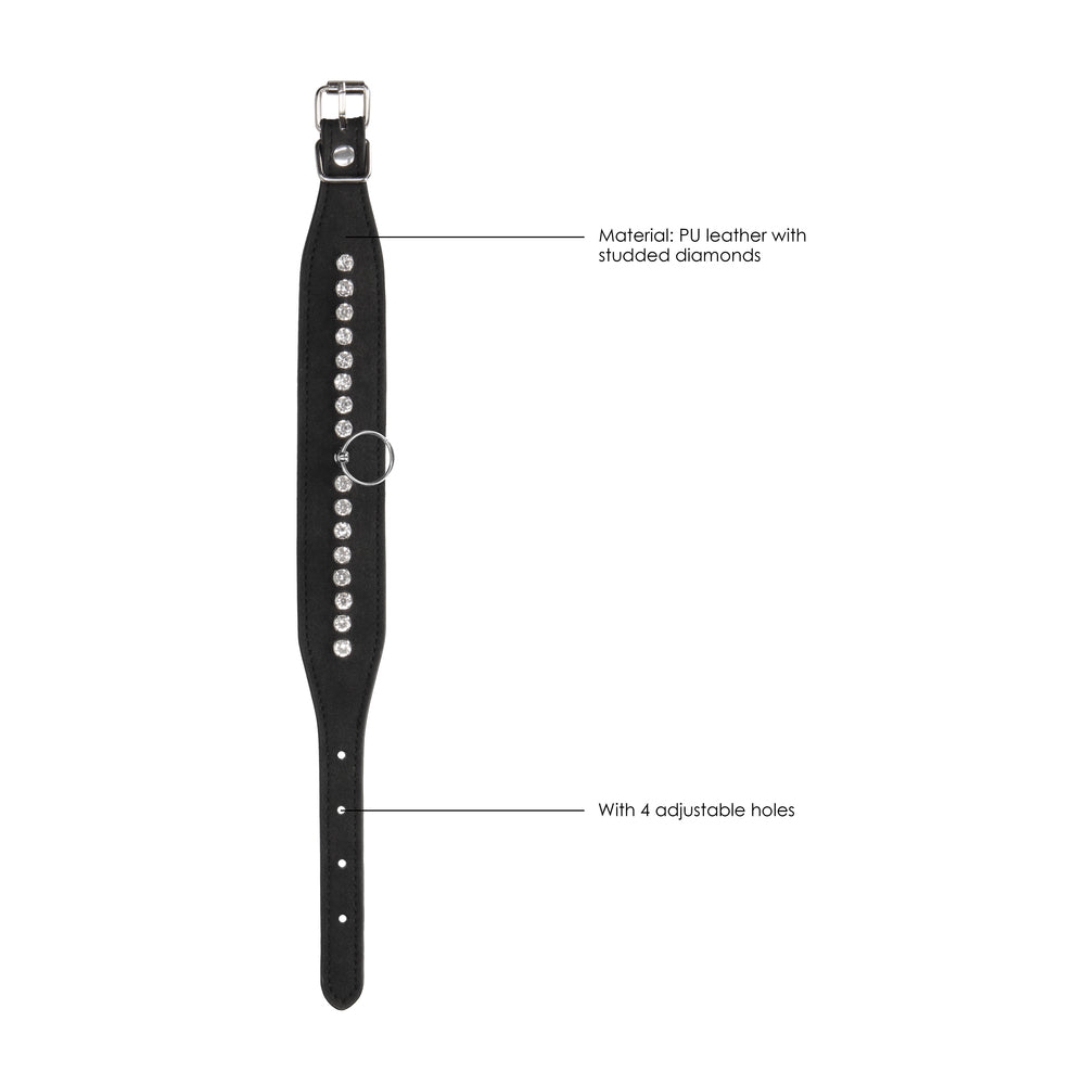 Get ready to please or receive in the intense Diamond BDSM line. Glamorously tough, the perfect combination of firm faux leather and glamourous diamond studs will turn you into the star attraction of the night. Sometimes not being in control is the sexiest thing in the world. Get tied up with Ankle Cuffs and enjoy your limited freedom. These cuffs are adjustable in size and are easily attached together or to another object. The perfect addition to a very hot kind of trouble it is time to set your dark side free.