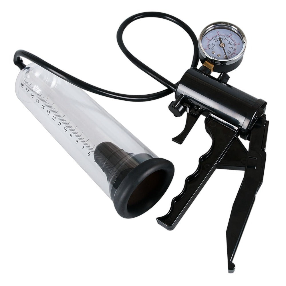 Get him into shape so you can enjoy longer and harder erections. Simply insert your penis into the transparent vacuum cylinder and produce the effective potency vacuum with the special scissors grip. control the pressure level on the manometer. When blood flows into your swelling member and your penis gets stiff and large, your success can be seen on the scale.
