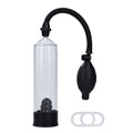 8 inches x 2.25inches cylinder. The perfect pump for the first time or advanced pumpers, American Pumpers Association. Clear vacuum cylinder with universal incremental measurements. EZ-Squeeze pressure bulb with push-button release valve. Flexible non-crimping air hose. Flanged base with a removable soft ribbed donut. Stretchy enhancer with EZ grip handles. SAN cylinder, Silicone enhancer, donut, Phthalate-Free.