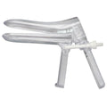 Transparent vaginal speculum made of firm and slippery material. Blades open up to 12cm. With engaging barrier.