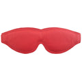 Large leather padded blindfold with buckle closure for adjustable sizing.
