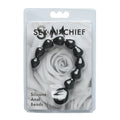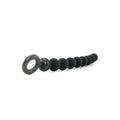 High quality, black silicone 9.75 inches long with 9 beads, with a phthalate free plastic ring on the end. Smooth seam.