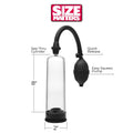 Get ready to pump it up for bigger, longer erections with The SMP Beginner Pump. Perfect for those just starting out, this pump gives you all you need to enlarge! With a soft sleeve, easy squeeze pump, flexible hose and quick release valve, you will have no trouble. Measurements Approximately 8 inches in length, 7.5 inches for penis, circumferences of 7 inches tip. to 7.25 inches base, and opening of 2 inches in diameter.